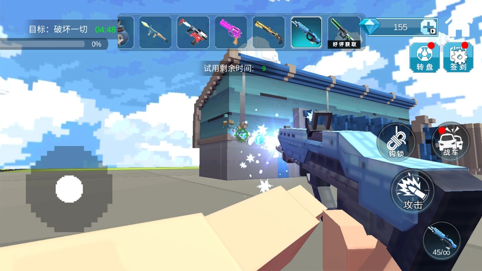 3.玩家可以驾驶战车进行疯狂的碰撞和碾压,还能解锁更多的方块和道具进行破坏。