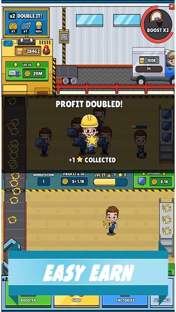 在闲置生产大亨游戏中你将会成为生产厂的老板,招募员工并投入成本进行生产,游戏中的流水线经常会发生各种问题,不要着急,你可以快速的使用不同的方式来修理。游戏的目标就是将生产做大做强,要是你感兴趣的话那就不妨来试试吧!