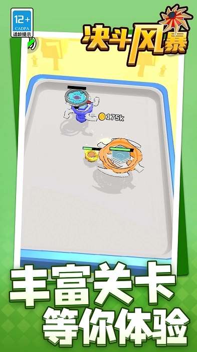 决斗风暴是一款以陀螺为核心道具的电竞游戏。玩家需借助陀螺发射器,将陀螺发射至竞技场,通过操控陀螺的旋转、攻击与防御等动作,击溃对手的陀螺以获取胜利。该游戏运用了独特的物理引擎,让陀螺的移动、旋转、弹跳等动作更为逼真流畅,为玩家带来前所未有的沉浸式体验。