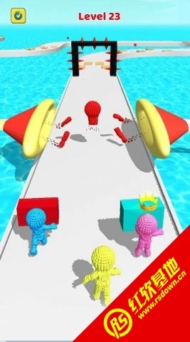 1.这里设置了大量关卡与充满冒险元素的玩法。你得在前进途中收集木棍,用它们搭建桥梁来通过各个关卡,还要快速冲向终点线,这样才能赢得比赛。