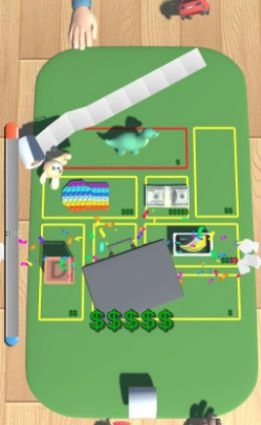 1、在一个指定的桌面上,划分出你和对手的不同区域,在各自的区域中摆放着各种玩具;