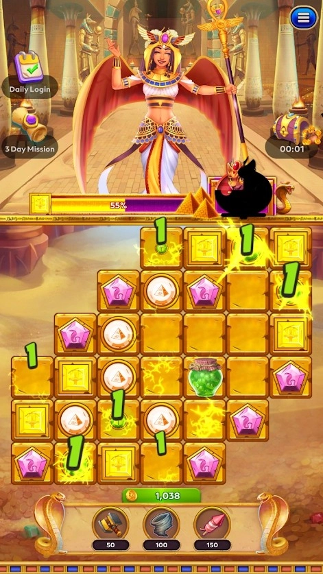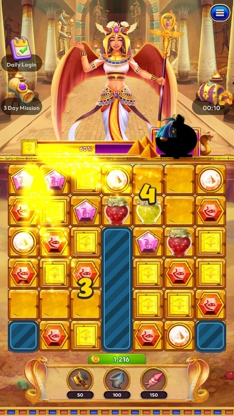 1.只需将3个或更多相同的珠宝组合起来炸毁,达到最高分即可揭开上帝的神秘面纱,找到克利奥帕特拉的宝藏。