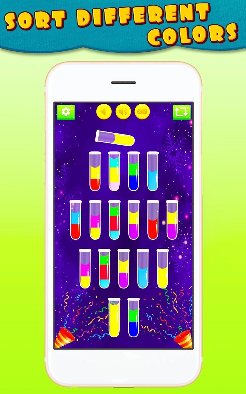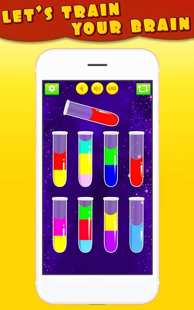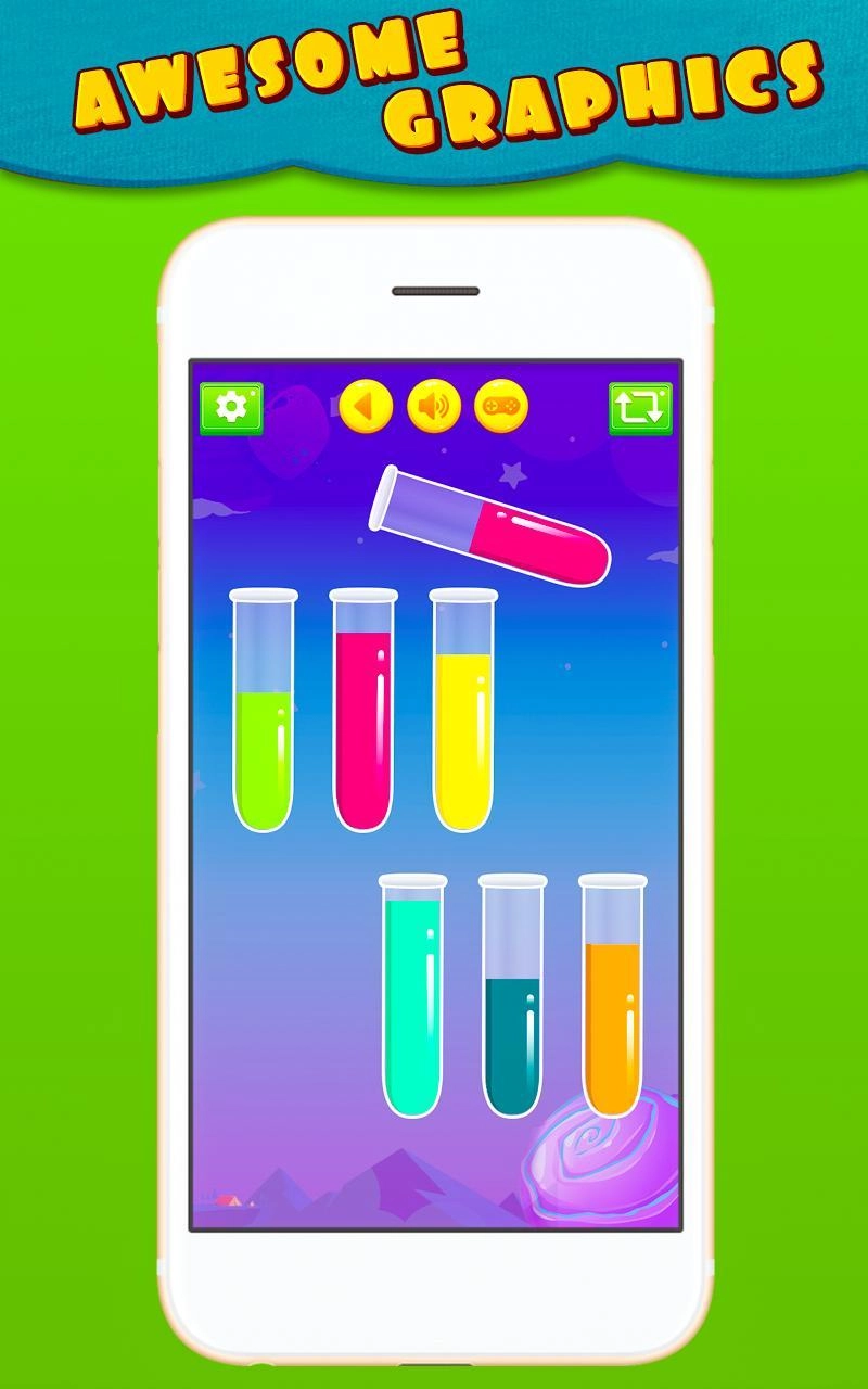 同样颜色的液体,放在试管里,刚开始很简单,但等游戏水平逐渐提高后,难度会越来越大;