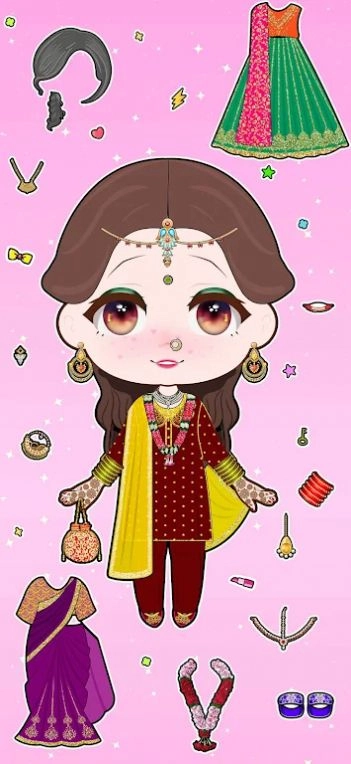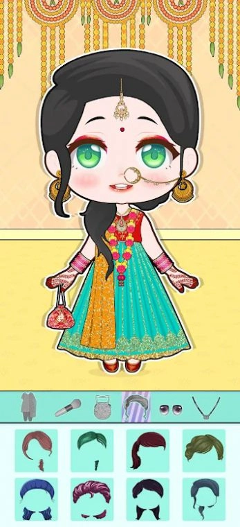 印度娃娃装扮游戏安卓中文版中,玩家可以选择不同款式的印度传统服饰,如锥形长裙、束腰上衣、巴拉纱等,还可以选取具有印度元素的珠宝、头饰和面纱进行搭配,打造出充满异域风情的娃娃形象。
