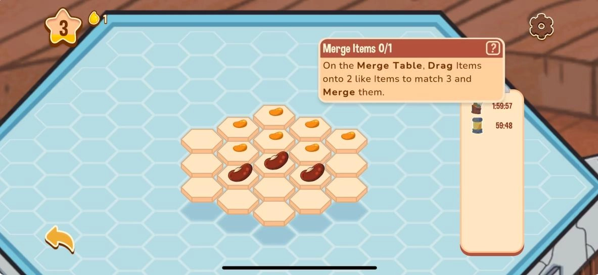 2、收集各类资源,将不同物品进行合并,制作并升级建筑与工具,一步步重建蜜林。