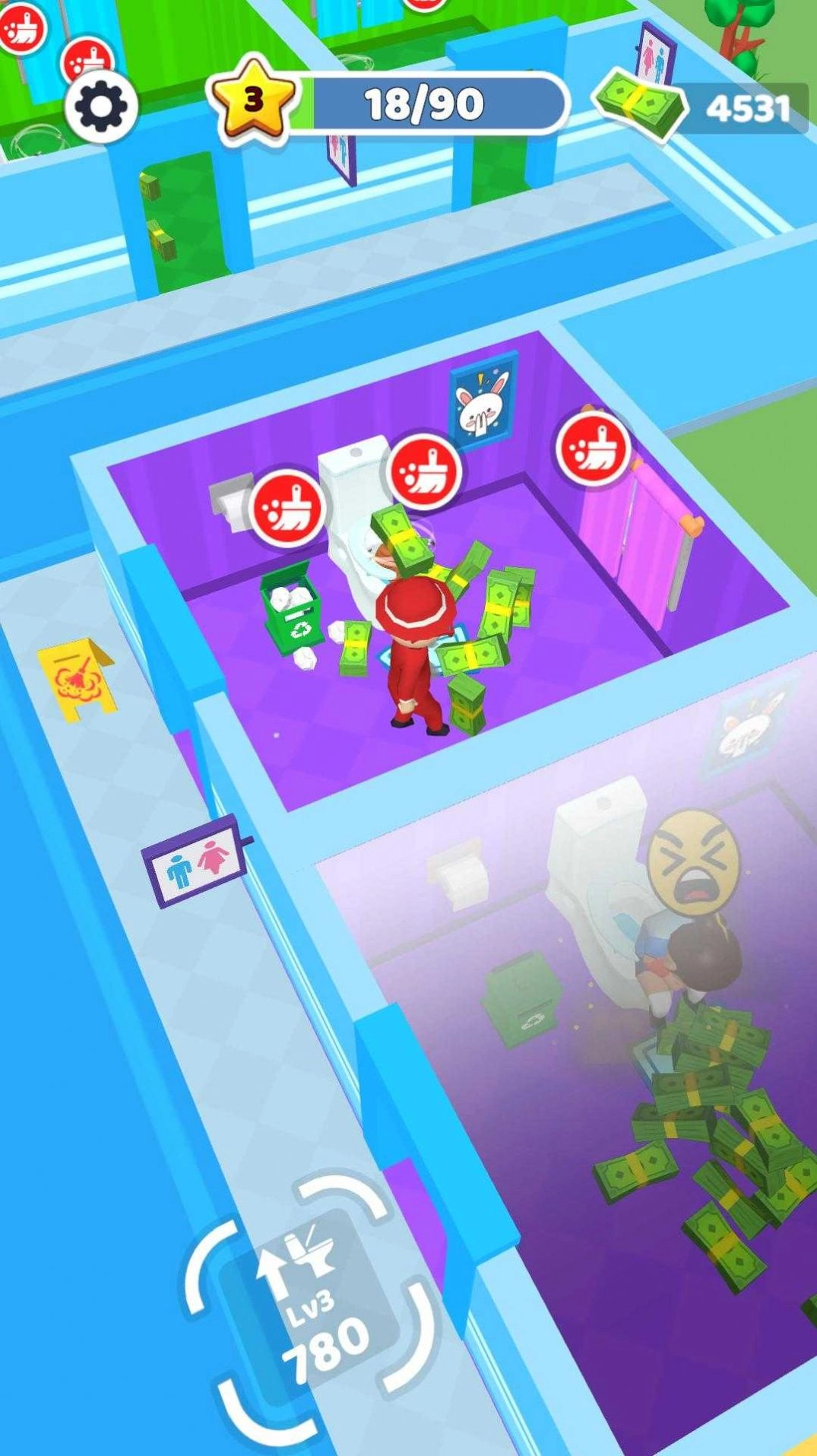 2、接着用赚得的钱对厕所设备进行升级改造,添加更多高级的厕所用品;