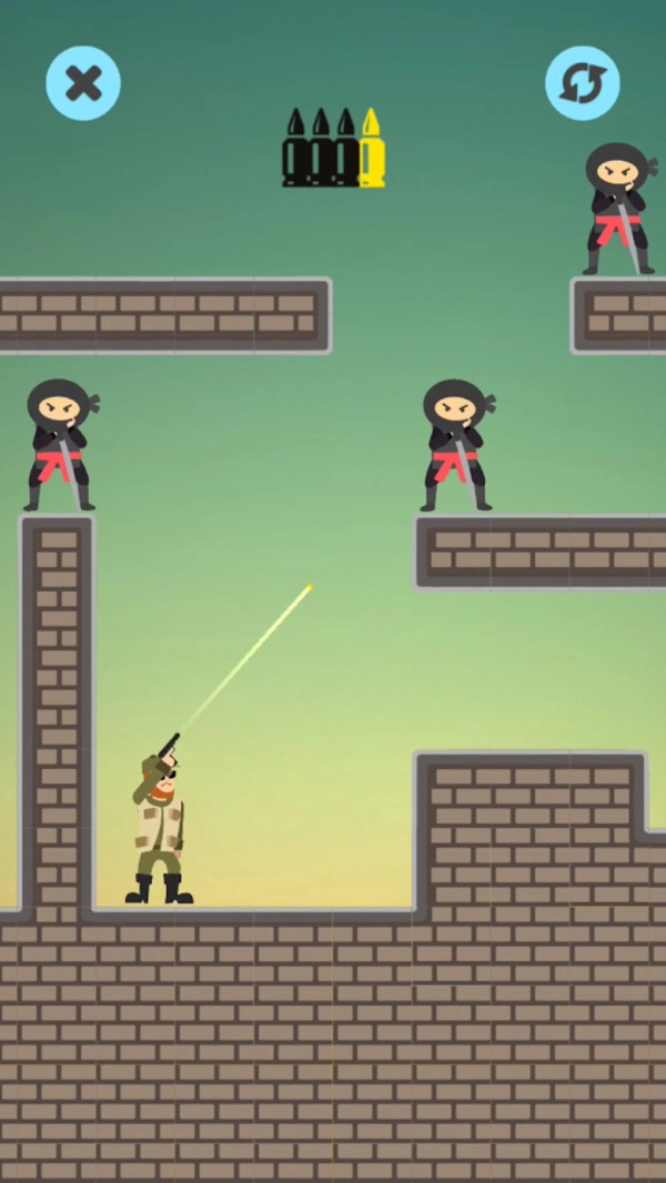 使用少量的子弹去完成更多的射击任务,还能使用子弹进行弹射射击。