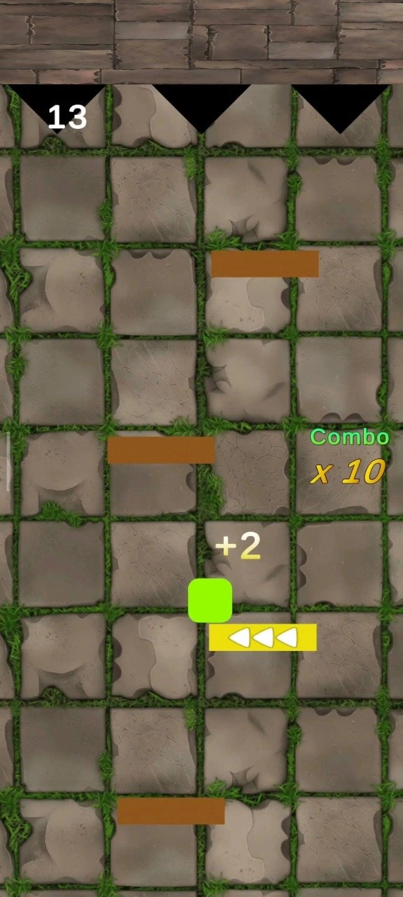 1、操控块状物进行跳跃,以此避开各类障碍物,尽力跳至踏板之上;