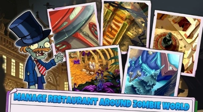 1、在僵尸世界里穿梭探索,找寻隐藏的用餐场所,依据不同场景的特性调整经营策略,为各类僵尸提供周到的餐饮服务。