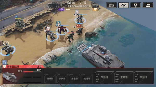 因为运输艇与岸边相距一格距离,所以我方的格斗机兵没办法对运输艇发起攻击。