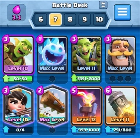 这张仅需2点圣水的卡牌,既能造成伤害,又具备击退效果。击碎后召唤出的野蛮人同样具有威胁性,作为一张能实现一卡双用的卡牌,它的清场能力颇为出色,用来牵制敌人后排完全不在话下。