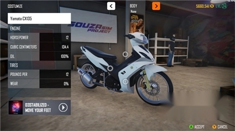 1、SouzaSim就是关于调教:更换排气装置、轮辋、大灯,通过配置悬架来降低摩托车的高度等等。