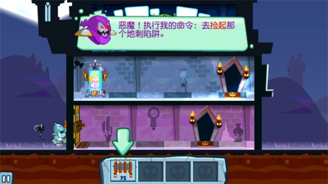 布置陷阱:玩家可在城堡的地面、墙壁和天花板上放置陷阱,如地刺、连弩、酸液滴头等,阻止英雄前进。陷阱分为自动和手动两种,自动陷阱摆放后会自动攻击,手动陷阱则需玩家点击触发,且有冷却时间。