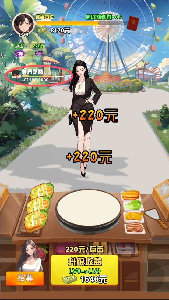 2、点击出门,通过制作煎饼来赚钱。
