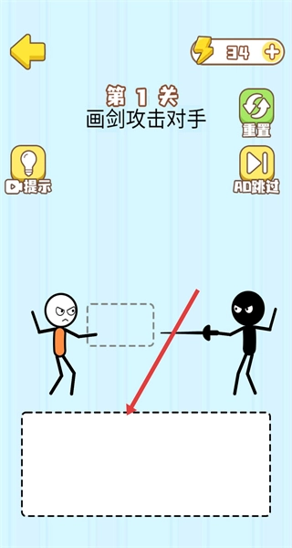 3、玩家需按照提示通过画线来发动剑击攻击,在规定区域内绘制线条,以此构建出武器和攻击路径来对抗对手,从而达成关卡设定的目标。