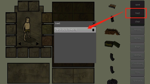 5、打开“load”,选择之前保存的存档,就能快速生成搭配了。