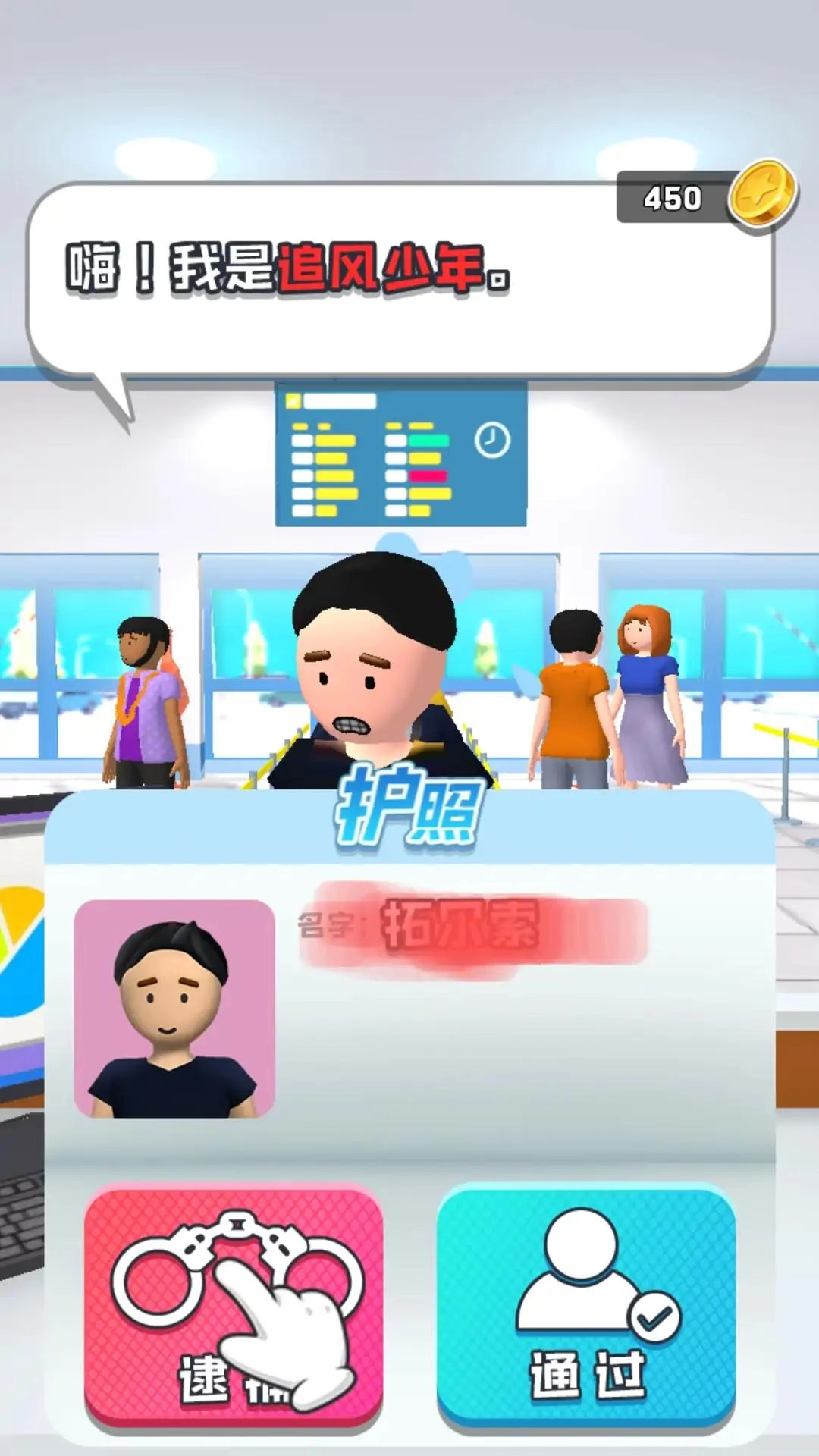 玩家将扮演机场安检人员,检查旅客护照的真实性及是否携带危险物品,完成任务后可获得宝箱奖励。