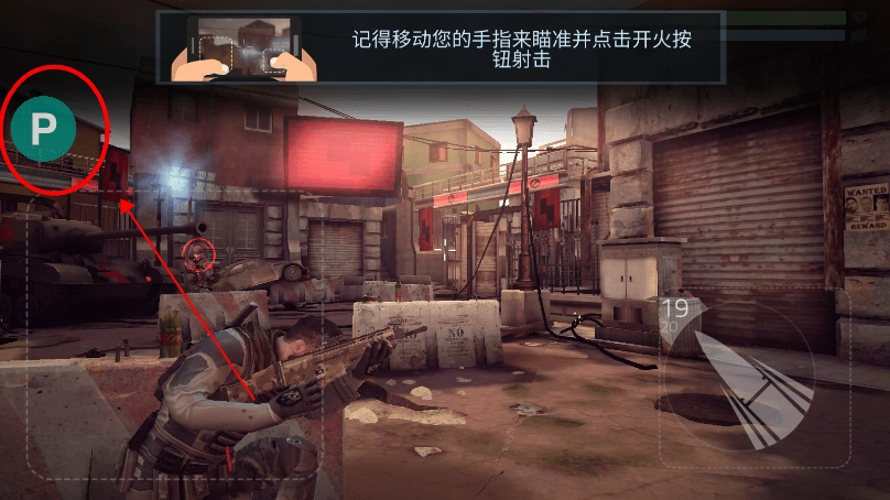 2、需要攻击敌人的时候移动屏幕,将准线对准敌人。