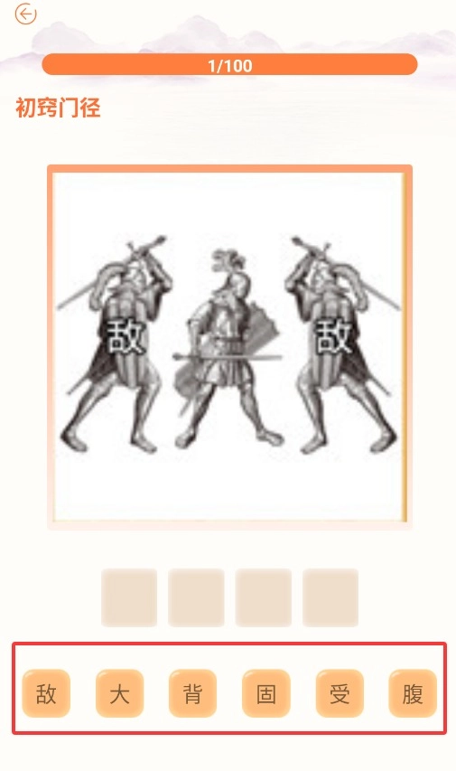2、游戏开始后,最上方会显示一张图片,这张图片并非随意放置,而是与待猜测的成语存在关联,需要仔细观察。