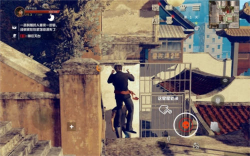 2、玩家首先要接取第一天的任务,操作方式为横版,屏幕左侧用于控制移动,右侧则设置了攻击、跳跃等按键。