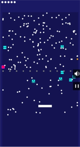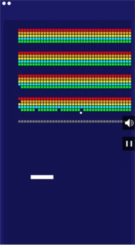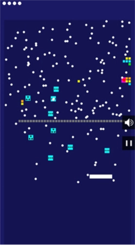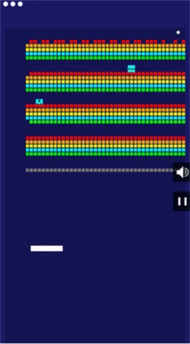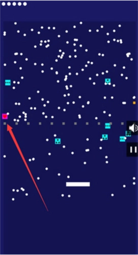 1、玩这个游戏时,玩家要操控一根横条让小白球反弹,以此来击碎一块块砖块。那怎样才能把所有方块都打完呢?关键技巧是把小白球打到两排方块的中间位置,就像下面这张图展示的那样,这样小白球就不会掉下来,会一直在上方持续反弹!