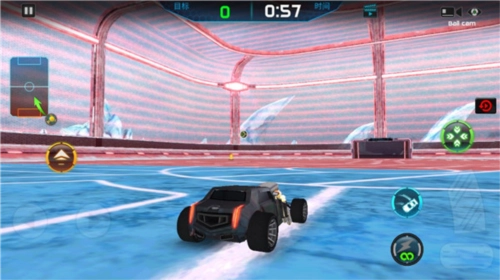 2、玩家将在一片类似足球场的场地上,驾驶赛车展开球赛。