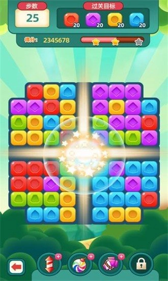 玩家在游戏过程中,只需点击屏幕上连续相同的砖块就能将其消除,消除砖块会获得分数,当分数达到关卡设定的目标分数时,就能顺利通关。
