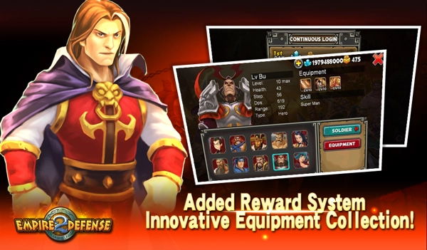 1、策略塔防与RPG玩法的巧妙融合,通过武将培养、装备强化、兵种提升,在变化多端的布阵中展现智谋,称霸一方。