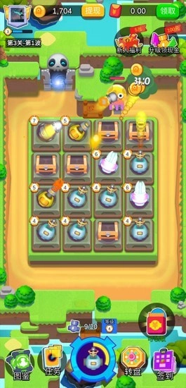 暴打怪兽红包版是一款轻松休闲的合成塔防游戏,画面采用卡通可爱的风格,整体画风清新明快,操作也十分简单。玩家只需放置炮台抵御怪物入侵,就能轻松获取各类奖励。游戏玩法休闲解压,深受玩家喜爱,很适合休闲玩家上线体验。