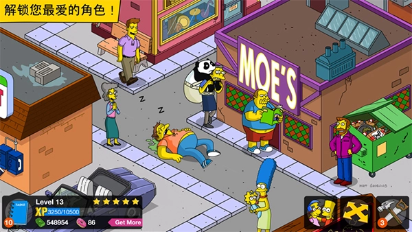 《辛普森一家》是一款改编自同名动漫的休闲模拟经营游戏。在游戏里,玩家将化身为辛普森一家的成员,去完成各类任务与冒险。游戏中包含霍默·辛普森、巴特·辛普森、丽莎·辛普森等众多大家熟悉的角色,每个角色都具备独特的技能和鲜明的特点,玩家需要对这些角色进行合理的搭配与运用,这样才能顺利完成各项任务。