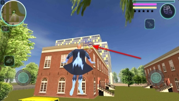 3、启动飞行功能前往目标建筑,抵达屋顶的指定位置完成互动操作,飞行过程中需保持状态稳定,保证精准到达目标区域,以此推动任务进度。
