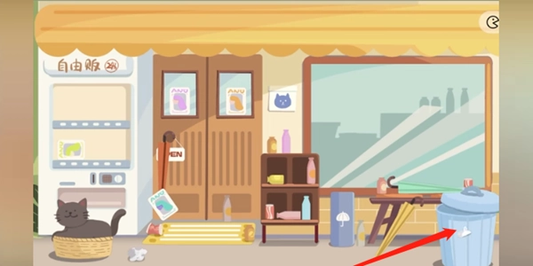 3)把所有饮料都放进贩卖机里,其中有一瓶可乐藏在小猫身后,只要把小猫移开就能看到它了。