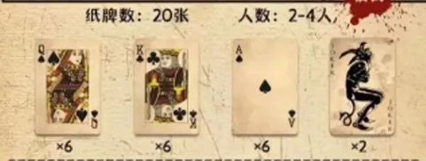 3、骗子牌的玩法:游戏时场上总计有20张牌,其中包含6个A、6个Q、6个K,另外还有两张万能牌。