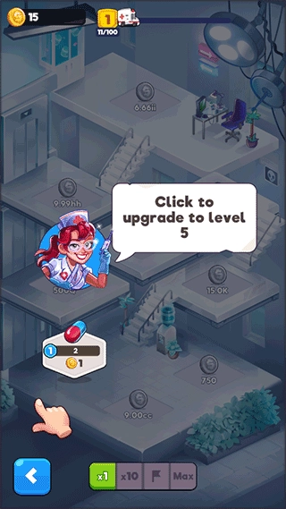 3、你需要将获取来的金币给每个医生升级。