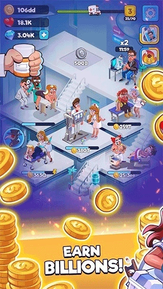 以医院模拟为核心玩法,融入丰富多样的仪器设施与各类趣味十足的病人,结合放置类的操作模式,为玩家带来极为休闲的游戏体验。