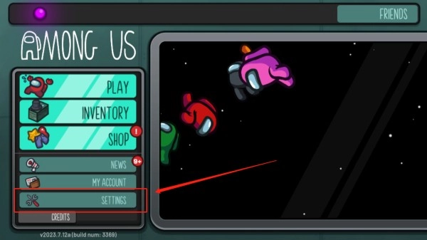1、打开《太空狼人杀》,进入主界面后点击“settings”选项