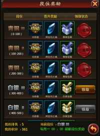 每次参与天梯挑战,都会提升一点当前的活跃度,当活跃度满足规定条件时,就能领取对应的活跃度奖励。活跃度奖励会在每天的0点进行重置。