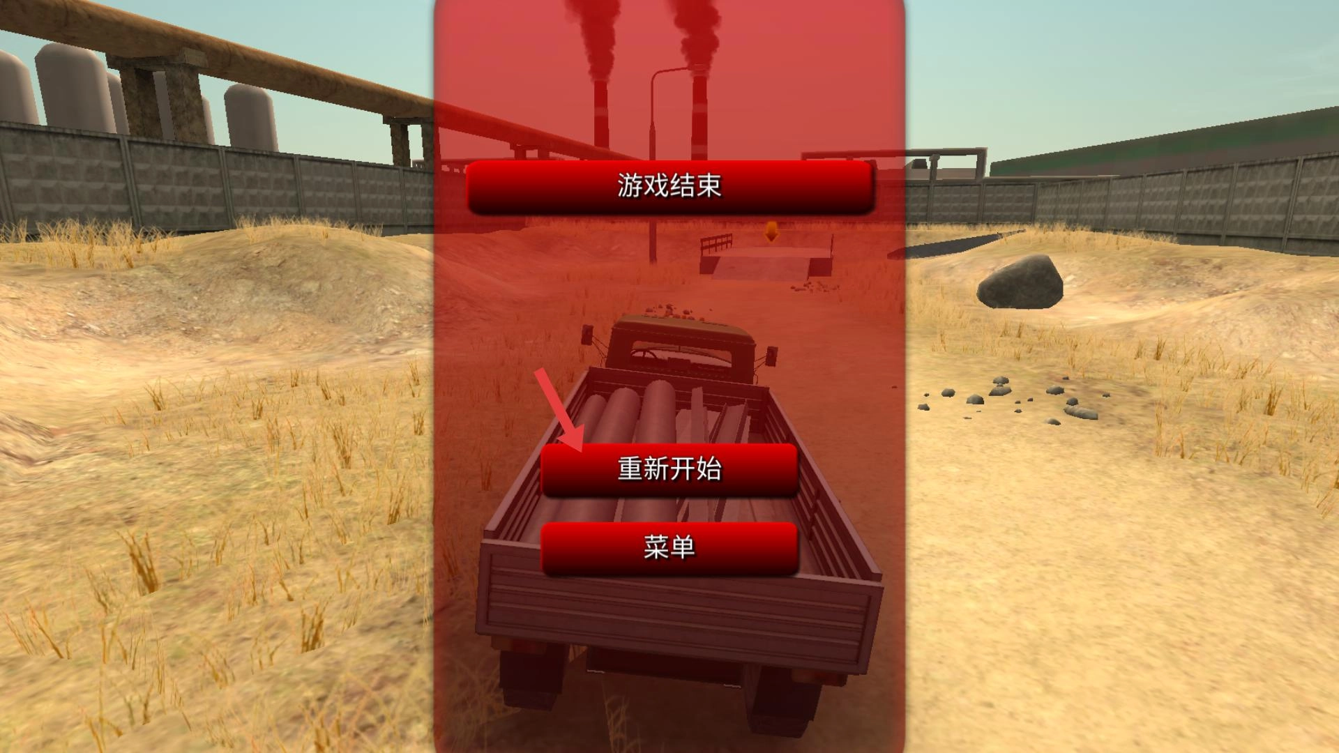 4、当运输任务结束后,界面会出现【重新开始】与【菜单】两个按钮,点击【重新开始】按钮,就能再次发起运输挑战,继续享受卡车驾驶带来的乐趣。