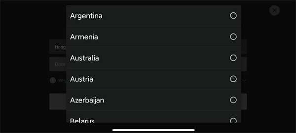 2、选择国家地区,本次测试仅面向25个国家/地区开放(具体国家/地区已在上文中提及)