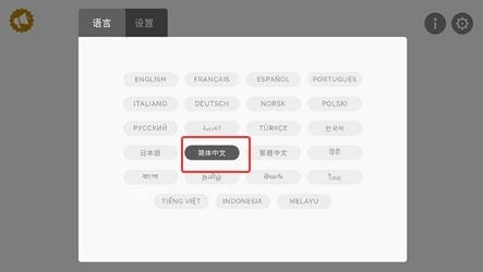1、在主界面找到齿轮形状的设置图标并点击进入,接着在语言选项栏中通过下拉菜单选择“简体中文”,就能完成语言切换操作。