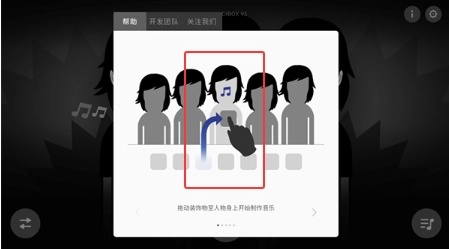 3、把右下角的乐器、特效之类的图标拖拽到角色的周围,每一个装饰物都能触发不一样的音效。