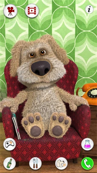 操作:操作过程十分简单,玩家只需用鼠标点击界面中的按钮,就能让狗狗做出吃饭、打电话等对应的动作。此外,玩家还可以开启麦克风,与狗狗进行对话互动,玩法相当有趣。