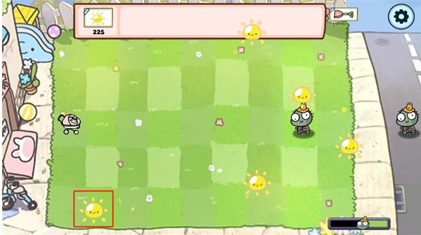 4、场景中会持续飘落阳光,玩家只需点击阳光图标,就能完成阳光的收集,务必快速且精准地进行点击。
