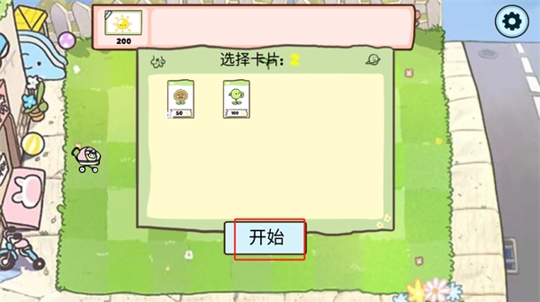 3、成功进入花园战斗场景后,玩家需选择一种植物,再点击开始按钮,即可开启战斗竞技冒险。