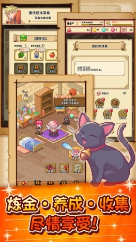 《笑容的炼金术师》是一款趣味十足的休闲模拟经营游戏。玩家将化身为一名炼金术士,在这个充满奇幻色彩的世界里,你将如何规划自己的人生轨迹?经典的像素风格场景,带来怀旧又清新的视觉体验。与传统冒险游戏不同,在这里你无需亲自与恶魔搏斗获取材料——只需发布任务,勇敢的冒险家们便会主动帮你收集所需资源。你需要运用炼金术将各种材料转化为形形色色的道具,通过出售这些道具赚取收益,还有大量新奇有趣的道具等待你去解锁和收集!