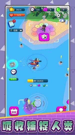 游戏开始时,玩家需从多个精心设计的关卡里挑选挑战目标。借助屏幕左侧的虚拟摇杆来操控异形移动,右侧则配备了特殊技能按键。当靠近人类目标时,系统会自动启动捕捉动作,不过要留意观察周边环境,防止被人类守卫察觉。成功捕捉目标后,玩家会得到经验值和特殊货币作为奖励,这些资源能够用来增强角色属性以及解锁新的能力。随着关卡难度逐渐增加,玩家需要更谨慎地规划行动路径,合理运用地形上的优势,这样才能顺利完成难度更高的任务。