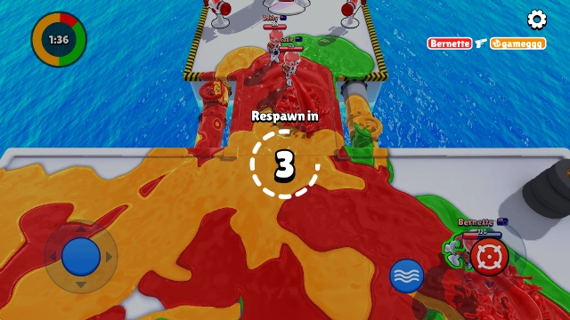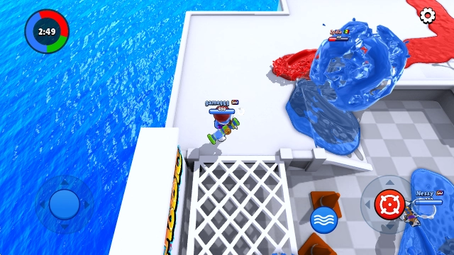 2、地图上的每支队伍都拥有专属基地,以及能发射染料的哨塔,你的任务就是用颜料将对手和整个战场都覆盖淹没。