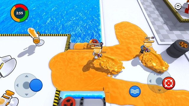 1、在游戏界面中,拖动左侧的摇杆能够控制角色移动,而右侧的摇杆用于发射颜料。