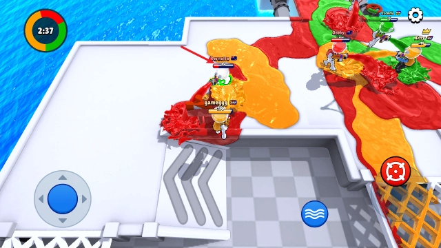 2、当遇到对手时,你可以立即使用颜料对其发起攻击,同时将所在区域染成你的专属颜色。
