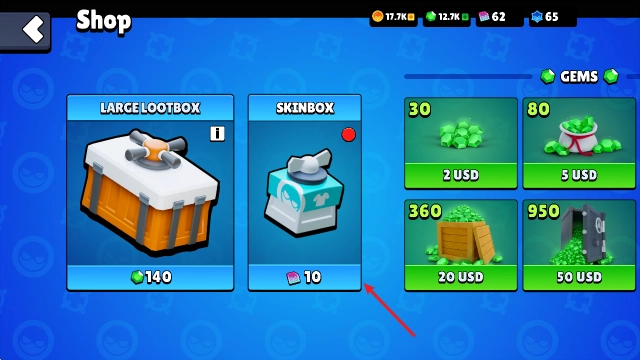 1、先进入商店,在商店里能消耗宝石开启宝箱,获取武器、皮肤卷之类的奖励。